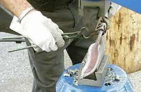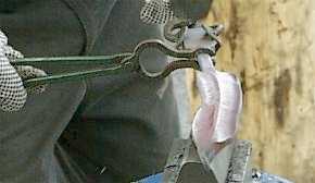 Notice the two hand two tong style for controling the work piece. |