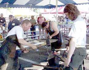 These talented fellows from the Czech Republic are making the conference logo grill. Their demonstration site is almost unattended. Why? Because a demo needs to be a show. The demonstrator must do more than just do the job, they must teach, they must entertain. And as Uri Hofi has pointed out a demonstration must have a beginning and an end. A four day project almost seems to have no end. |
