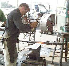 Several flat bars were welded into a tree shape that would be riveted to the forged channel.