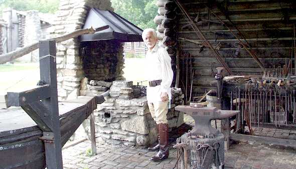 Besides historic interpertation Ralph is a photographer who produces "old time" photos and he operates Hooten Old Town an 1880's frontier town reconstruction. Ralph has also done blacksmithing and blacksmithing demonstrations. I could have easily taken the entire day to talk with Ralph but had an 8 hour drive ahead of me. If you get a chance, stop in the surveyor office at the fort or visit Hooten Old Town in McKee, KY. |
