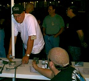 Left, John Larson discussing hammer business with Josh Smith of Big BLU hammers.