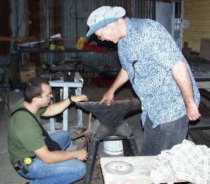 Josh Greenwood lives part time in Costa Rica and is building a "retirement" home and business here. Left, Johan showing Josh his prized Wilkinson anvil. |