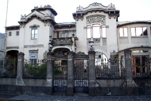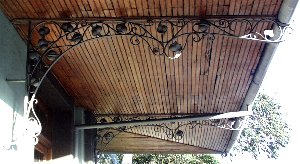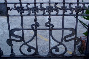 There IS some good ironwork in Costa Rica if you know where to look for it. Luckily we had Johan Cubillos as a tour guide in central San José. These Art Nouveau gates and fence are almost entirely hand forged and inlude a great many forge welds. There are a few cast components such as the molded collars but they are appropriate for the design. It is speculated that a European smith was brought over to do this job or that the work was imported as this is the only example. |