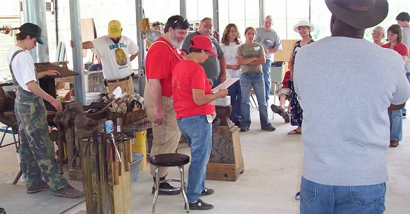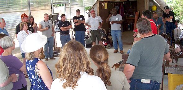 ![]() The Hammer-In opened with my describing the zinc fume fever that led to Jim's demise and then Sheri Wilson reading of the WORD LIST. The word list was compiled by the Mary Katherine Schumacher, wife of one of Jim and Sheri's 27 foster children. It is words provided by family and friends that described Paw-Paw good or bad and as they knew him. I was surprised that I had a word for every letter in the alphabet. These were read at his memorial service and again here. ![]() A Circle of Friends Over 60 people attended this gathering. They included blacksmiths from Michigan, Kentucky, New Jersey, North Carolina, Virginia. Six were members of CSI.. There were also many friends and family members. |