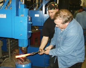 Steve Barringer of the Power Hammer School is finishing a ball I started.