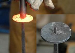 Hofi and Doug Merkel showing Hofi's new method of attaching a candle cup or pan to a stem.