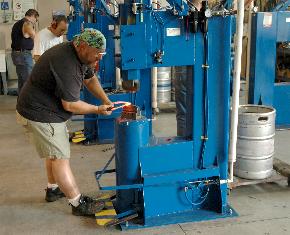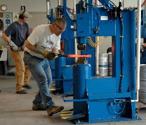 Doug Merkel of Bear Mountain Forge working at a BigBLU. Forging a ring by stretching the edge with crown dies.