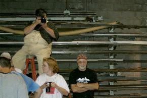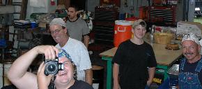 ![]() Josh Smith being goofy! Laughing in back: Steve Barringer, Shane Curfman, Steve Feinstein Power Hammer School is not all work. There are meals, comradery and fun as well. |
