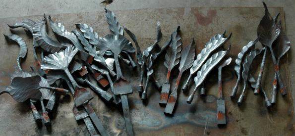 ![]() A few of the pieces forged in 6 hours of filming. Some 50 elements were forged 3 times each. All were perfect and none required "second takes". |