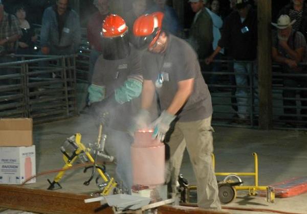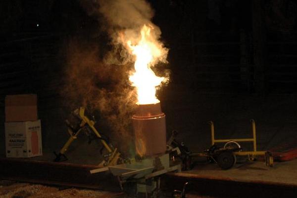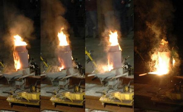 Only seconds pass from ignition until the pour is complete.
