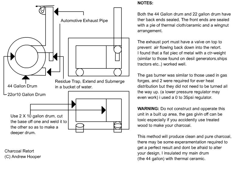 Uses LP gas to convert wood to charcoal. By Andrew Hooper, NZ. (LZY compressed)