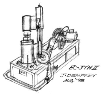 Further Comments: This is another machine that should be buildable on a $200 budget or less. The drive is set at an angle so that it fits in the smallest possible rectangle. The base as shown is rectangular but could be any polygon or even ovoid. The anvil may need to be set down into the base depending on the diameter material available but the support should be at the top for strength and load distribution. The guide system will probably be two pieces of angle with 45° flanges so that it can be easily adjusted to the tubular guide. This is actually easier than finding telescoping tubing or fabricating a box section to fit. |