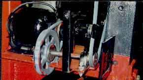 This hammer has a very compact drive system using a slack belt clutch with front pulley drive.This double reduction system produces 108 strokes per minute. |