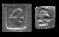 - Seahorse in modified octagon, either relief facing left or intaglio facing