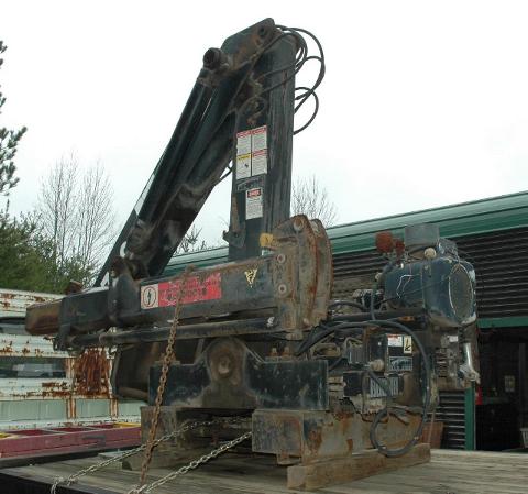 Nice self contained Swedish machine that will pick up 4 tons in close and 1.5 tons stretched to its 16 foot max. Folds up behind the cab in about a 2 foot space 8 foot wide. Has its own engine and an electric remote. Could be mounted on a trailer since it has its own power unit.
