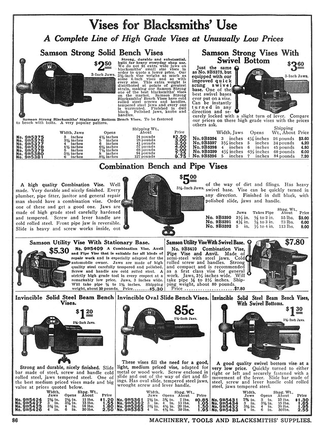 The vise shown could be a Columbian or Iron City. However, the supplied vices could be from any American OR British manufacturer.