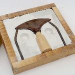 The halves of this box are also hinges at one corner so that they can be opened for easy removal from the plaster mold.