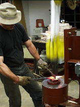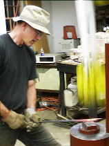 Josh Greenwood showing what the EC-JYH can do! Forging, Incising and cutting. Josh had seen drawings of the EC-JYH but when he first saw it he laughed and said, "It REALLY IS made of junk!" After running it and forging some samples he said, "NOT a bad hammer! It's NOT an AIR hammer, but it is very controllable for a mechanical hammer." |