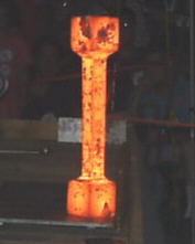 Night Forging Demo at Forging Station #1 Art Jones forging a 60 pound billet under a 300# Chambersburg utility (air) hammer. My appologies to Art! I had previously indicated it was Toby Hickman doing the demo. Toby was the station captain at the heavy forging station and assisted Art. Art, if you see this, I owe you one! |