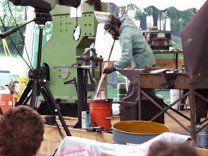 Scott Lankton heats his sword blade in preparation for forge welding.