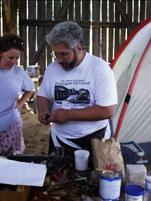 LEFT: Geoff Sullivan, "Grimbold from Scarlet Cross" explaining the use of different tools in the jewelry class.