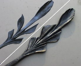 Below, forging finished at Asheville. Right, second leaf after touchup and splitting.