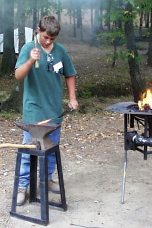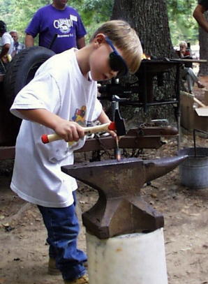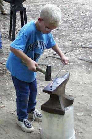 The previous night after the Nail Making Contest this young fellow wanted to try his hand at it.