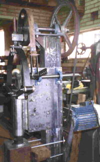 Hammer mass -- 30kg (66 lb) Anvil mass -- 200 kg (175*175*800mm solid bar) - clamped to column with a block of wood in between Speed -- 180 /min Motor -- 960 rpm 3hp (probably too big, butit was available) Hammer slide -- 2 off 20mm square brass bars Flywheel stroke -- 160 mm Spring -- 4 leaves 5mm by 45mm -- 600 mm semicircle - precompressed 10% Column - 4" by 6" m/steel - absolutely no sign of flexing |