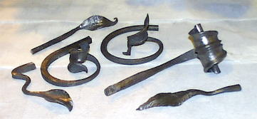 (below) Leaf to far left is Paul's, the missshapen one in the back is mine (I gotta' get back in practice) and the rest are Josh's. |