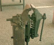 The vise has had the bench mount replaced with a shank to fit the hardy hole in the anvil.