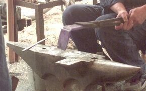 Japanese Smith working at anvil.