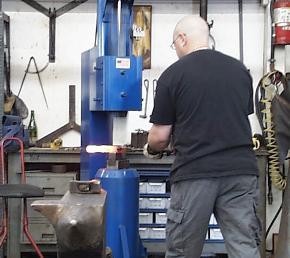 Master Blacksmith, an artist blacksmith from Israel who trained with Uri Hofi demonstrated power hammer technique on the Big BLU.