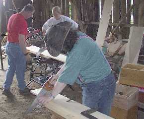 Legs were shaped using the instructors horse. Traditional methods of splitting, hewing and shaping were used.