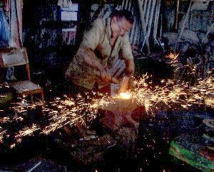 Guillermo is the oldest of the two brothers and retired due to health reasons. Trained to keep their methods secret they opened their small shop to us knowing they are the last of their kind. Driving by you would never suspect the unassuming little building about the size of a one car garage was a productive blacksmith shop. The floor slopes to up to the back and is crowned in the center from years of accumulation of scale and ash. |
