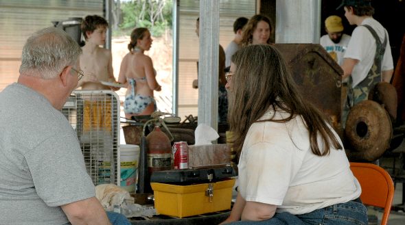 I demonstrated making a leaf from flat bar and a leaf on the power hammer.