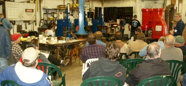 demonstrated on the BigBLU with the assistance of Steve Finestien who was heating and feeding hot steel to Dean as fast as he could.