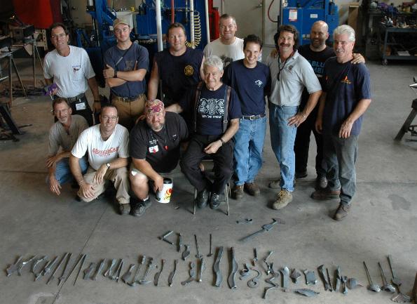 ![]() Attending : Ben Andrews - Turbine Technicians, Mike Braddee, Geren Conklin, Gary Cremeens, Rodger Dixon, Preston Farabow - Aespyre, Inc., Andy Chapman - Aespyre, Inc., Doug Merkel - Bear Mountain Forge, John Pozadzides - Texas Metal Works, Nigel Touder - Touder Ironworks. |