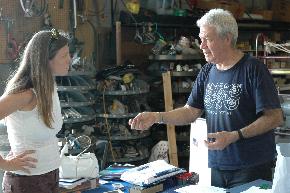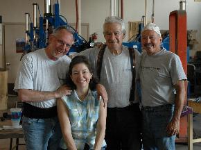 Sid Rodocker, Uri Hofi, Steve Feinstein and Patty Rodocker in front. Patty is Steve Feinstien's sister. Assisting during filming was Dean Curfman (the film's producer) feeding the forge and passing work to Hofi. ![]() |