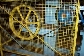 ![]() Large pulley / flywheel and crank uncovered. |