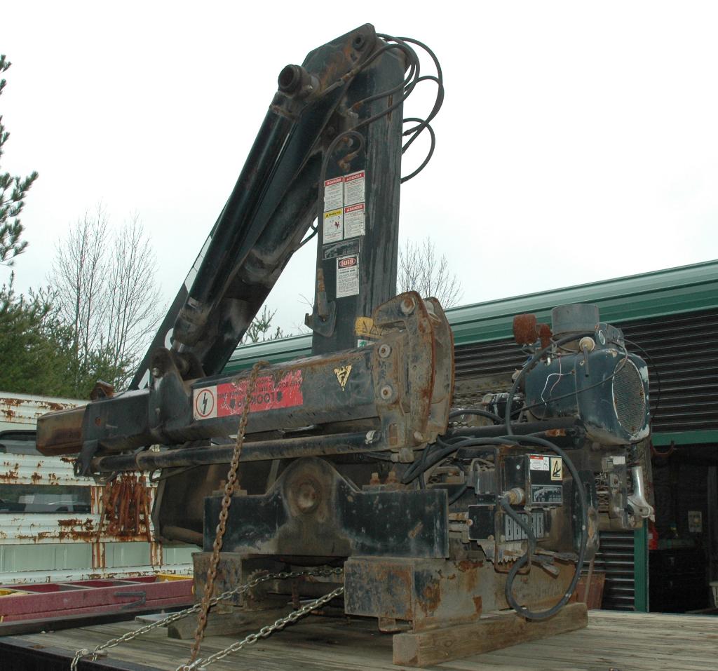 This crane has its own power unit (947 hrs) but could also have the hydraulic pump operated by a PTO. The power unit would allow stationary or trailer use. This unit also has a remote pendant operator.
