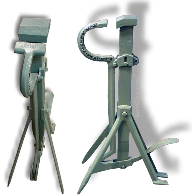 This beautiffully restored J H Boyce farriers vise was made in Fayette, Ohio USA. This well made vise can be assembled so that the jaw closes on either the sloping side or the level side.