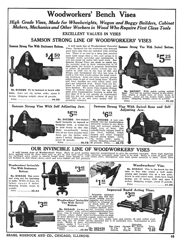 The vise shown could be a Columbian or Iron City. However, the supplied vices could be from any American OR British manufacturer.