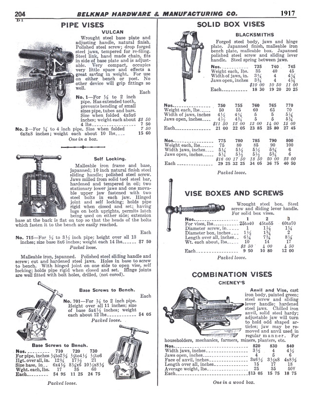 Belknap Pages I, Vises | Belknap Pages II, Anvils and Blacksmiths' Tools.